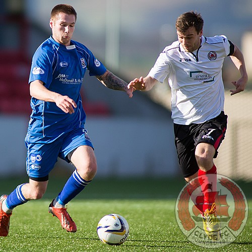Early in the second half, McManus was once again denied when his header was cleared off the line and Mark McLaughlin was next to threaten the away goal but he just missed the target.