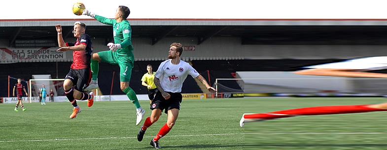 The Clyde goal then led a charmed life when an Airdrie shot from distance cannoned off the underside of the crossbar and bounced down on the line. The rebound then also clipped the bar, before Martin McNiff cleared another effort off the line to safety.